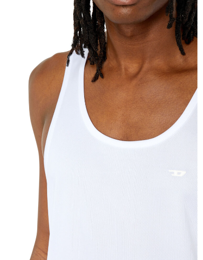 Part of the DIESEL SPORT collection, this men's tank top is built from technical sweat-wicking fabric with a birdseye weave. Its racerback silhouette flaunts an oversized rubberised print on the back and a rubber 'D' logo on the chest.