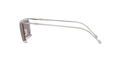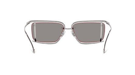 This rectangle and industrial model showcases floating lenses with a peculiar colored accent on the lenses' bevel and D logo engraved screw heads. Along with the entire collection, it features the distinctive metal double wire temples
