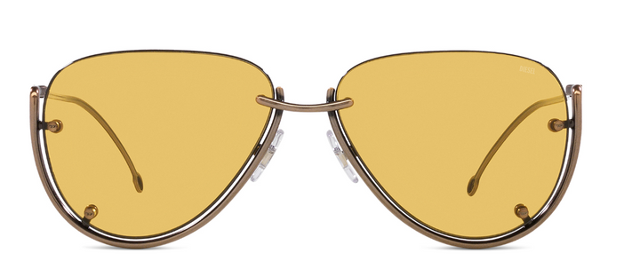 This pilot model showcases floating lenses with a peculiar colored accent on the lenses' bevel and D logo screw heads. Along with the entire collection, it features the distinctive metal double wire temples