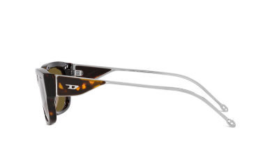 This ultra-wearable style is a mix of essential lines and Diesel's industrial DNA. Smooth acetate creates the rectangular front, while metal brackets amplify lenses with a 3D-effect. An acetate logo plaque adds a geometric edge to double wire temples in shiny gunmetal, shiny silver or brushed gunmetal.